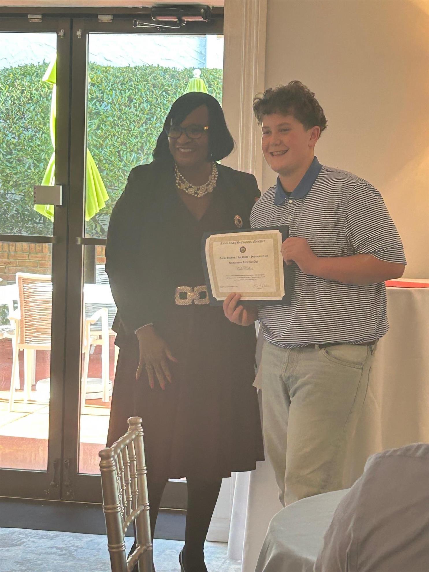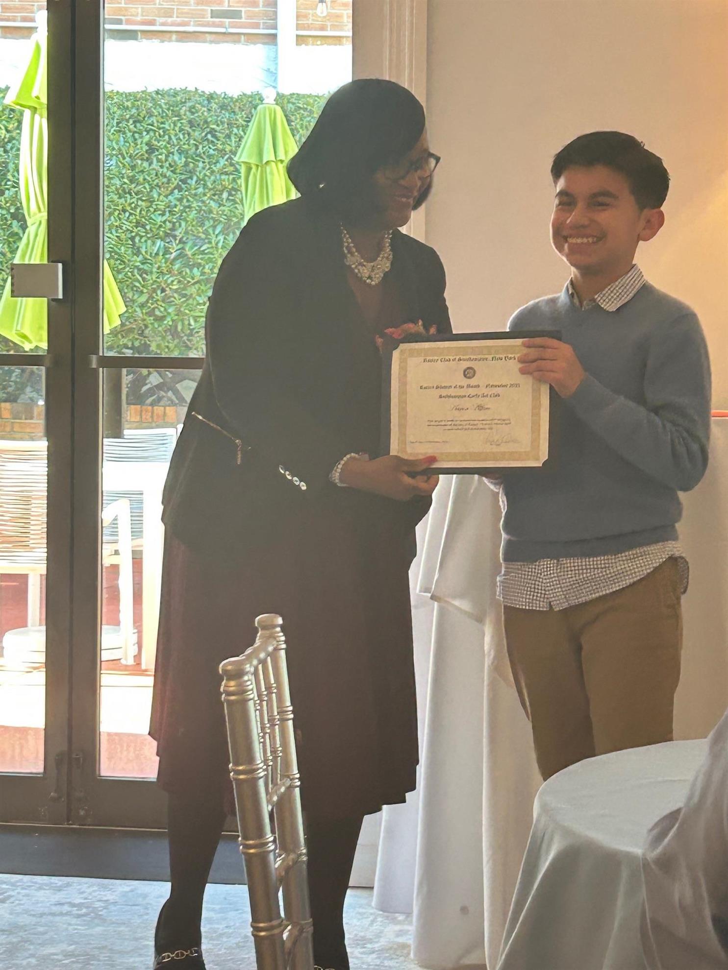 Meeting began with the prayer and the pledge. We munched on chicken fingers and fries as this weeks guests were our Student of the Month award receipents for September, October, and November. Holiday Party is this Monday!